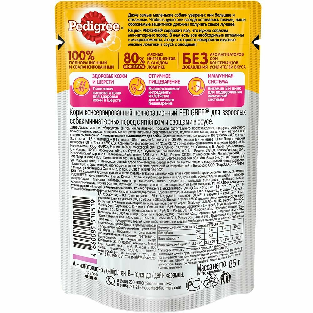 Купить Pedigree пауч для собак малых пород (кусочки в соусе) Ягненок и овощи, 85 г. упаковка 24 шт