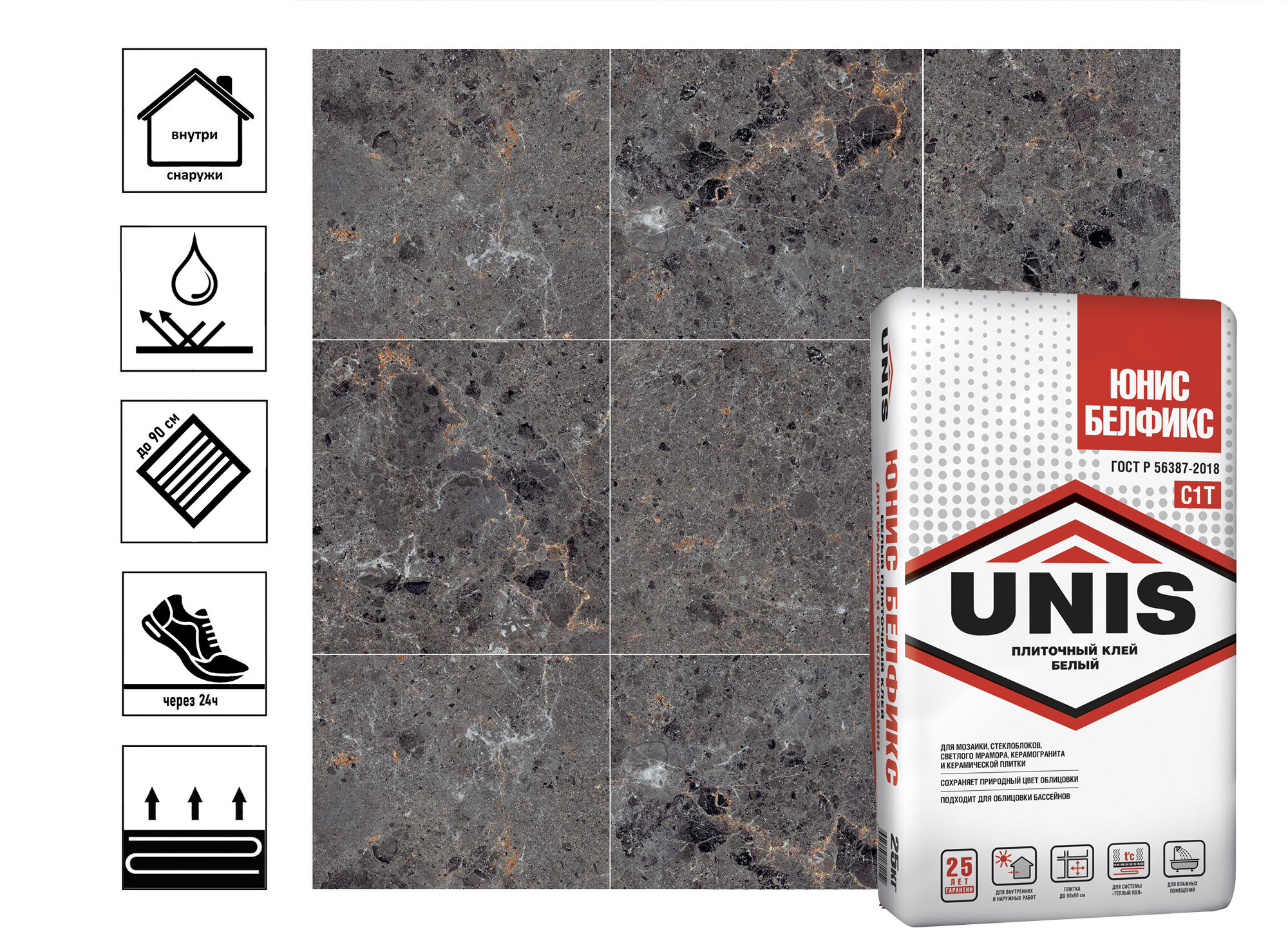 Купить Юнис Белфикс клей для мрамора и мозаики (25кг) белый / UNIS Белфикс клей для мрамора и мозаики (класс 1С Т) (25кг) белый
