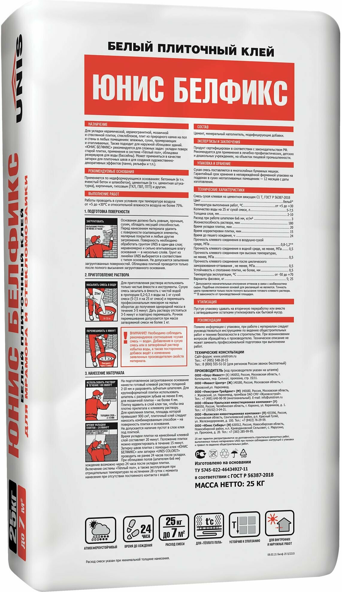Плиточный клей Unis Белфикс белый, 25 кг 4607005181152 .