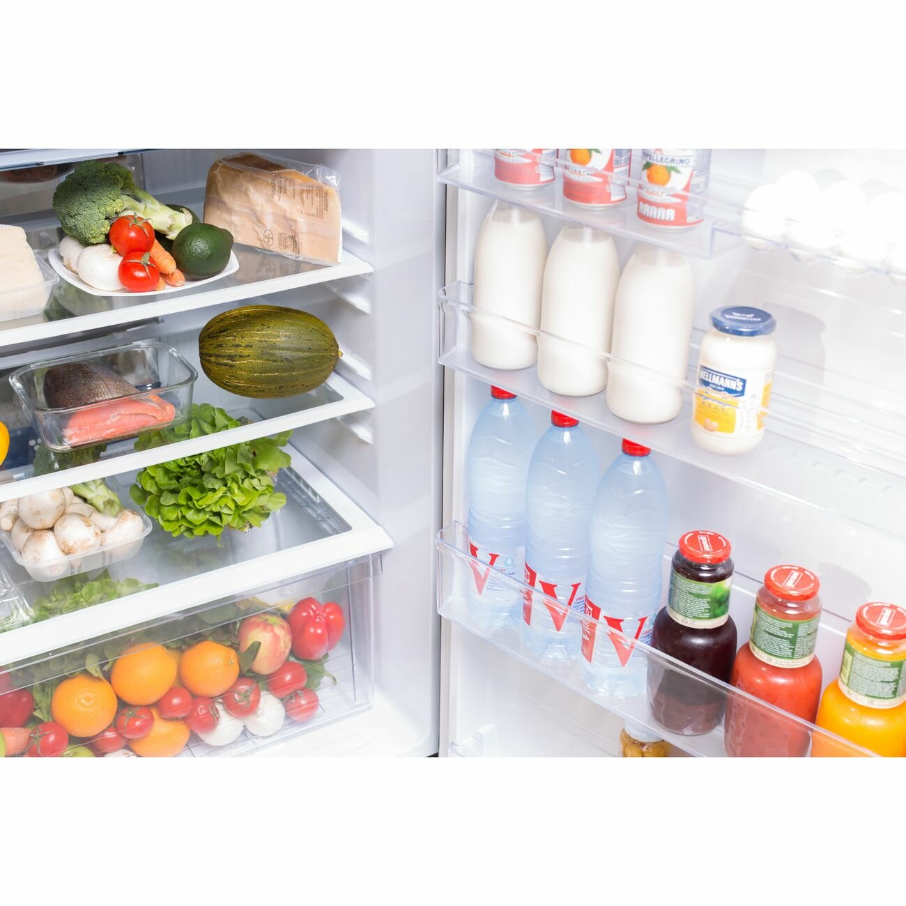 - не слишком высокий (для людей не очень высокого роста наиболее актуально), - всё продумано: полки глубокие, легко меняют высоту расположения, огромная корзина для овощей и фруктов - очень вместительная панель на дверцах (как холодильника, так и морозильника), -для меня очень удобно открывается - морозилка, в которую можно, кажется, тушу оленя впихнуть) |