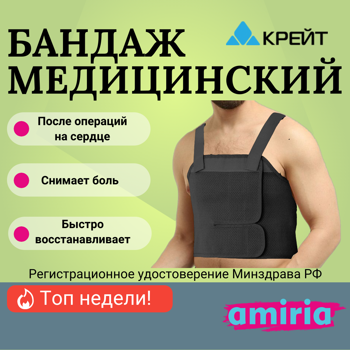Бандаж послеоперационный на грудную клетку мужской - "Крейт", №6, черный