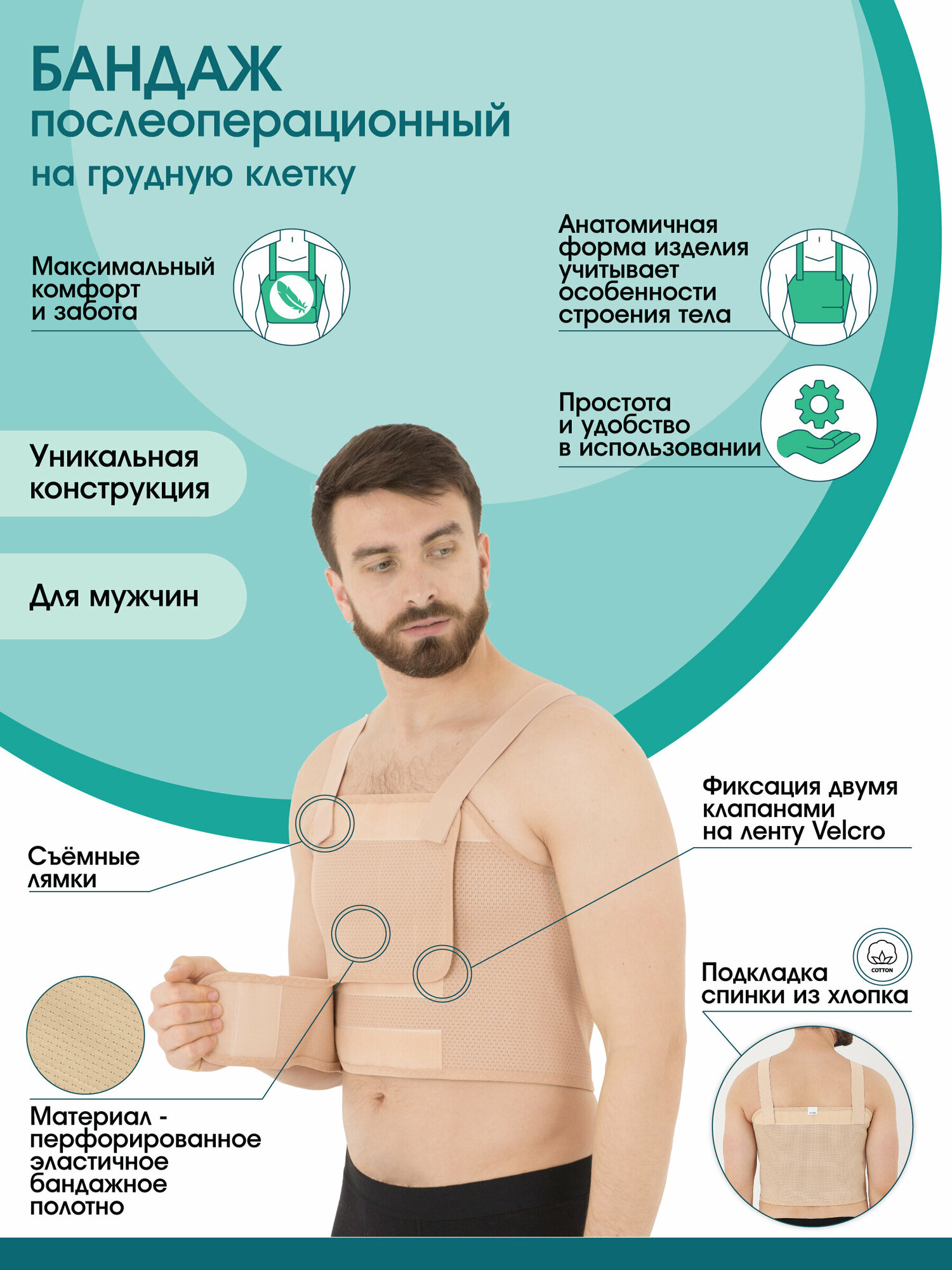 Бандаж послеоперационный на грудную клетку мужской - "Крейт", №4, бежевый