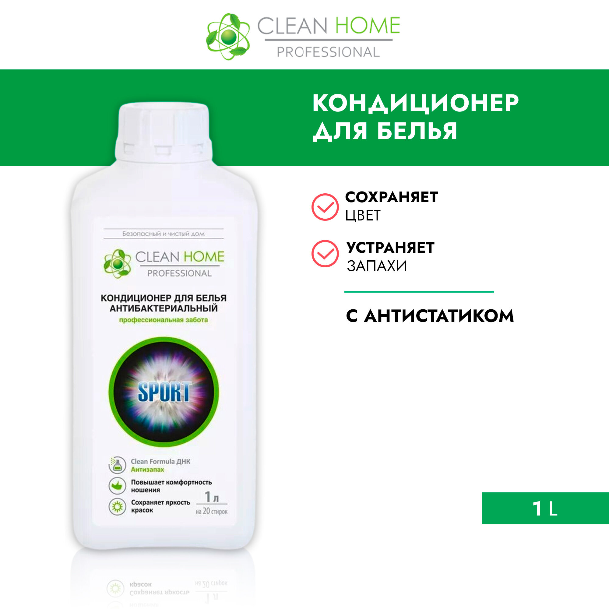 Кондиционер для белья CLEAN HOME 1л, антизапах, антибактер
