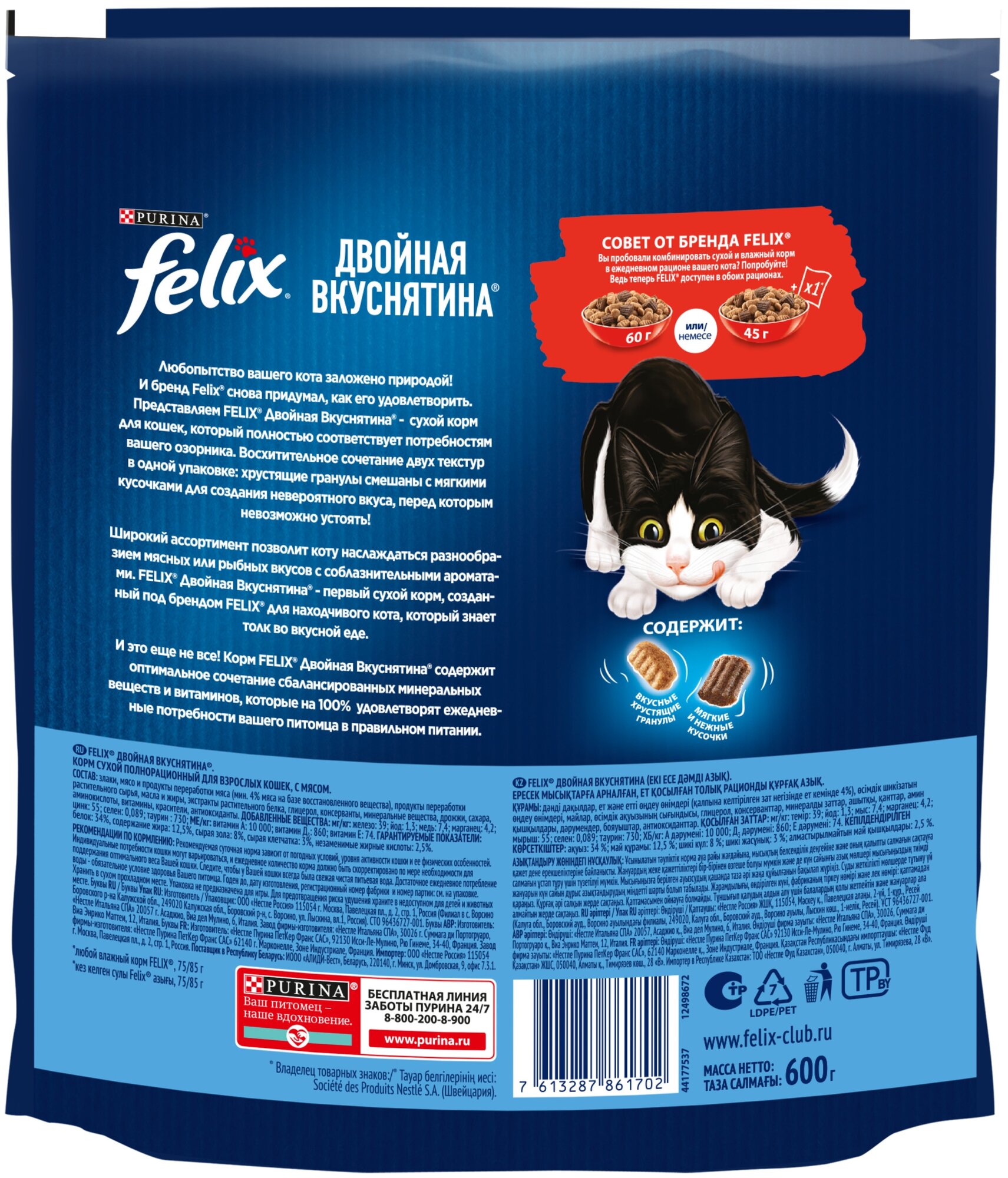 Felix Сухой корм для кошек Двойная вкуснятина с мясом 12498672, 0,6 кг, 59843