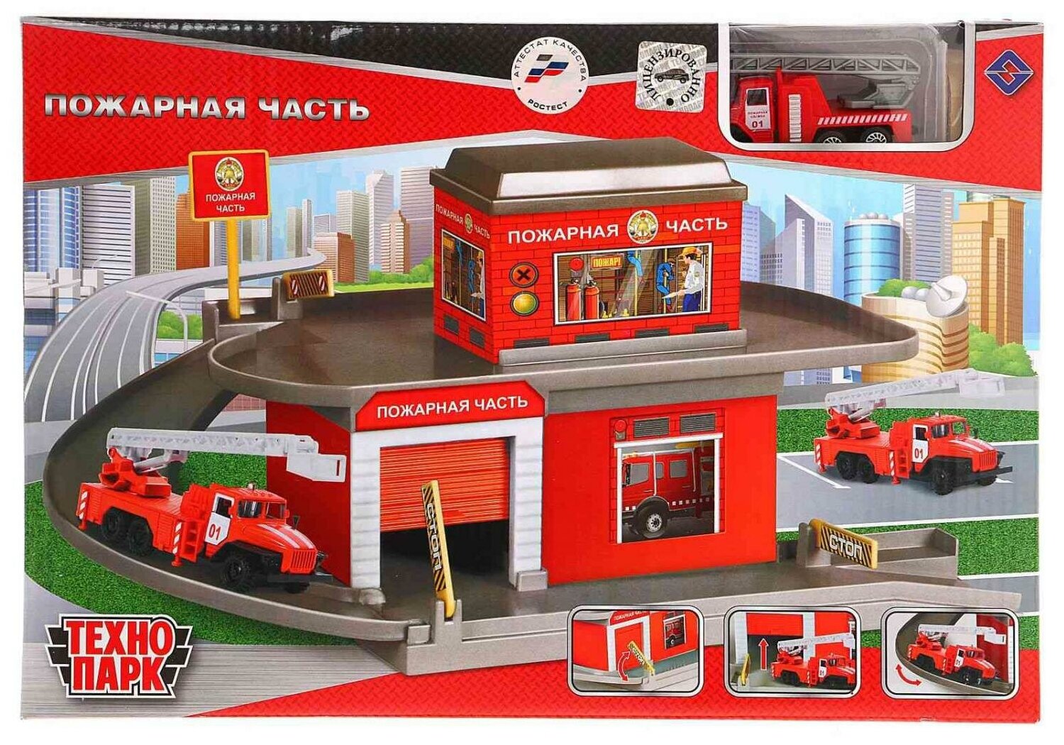 Купить Технопарк Гараж-паркинг Технопарк Пожарная часть с металл. машинкой 7,5см