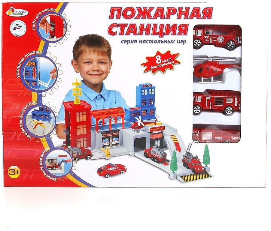 Купить Игровой набор Играем Вместе Пожарная станция с 3 машинками и вертолетом