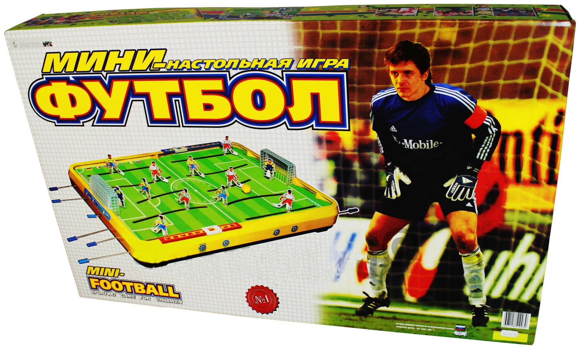 | Комплектация | футбольное поле, фигурки футболистов: 12 шт., фигурки вратарей: 2 шт., ворота: 2 шт., мяч: 2 шт., липкая аппликация - 2 шт. |
