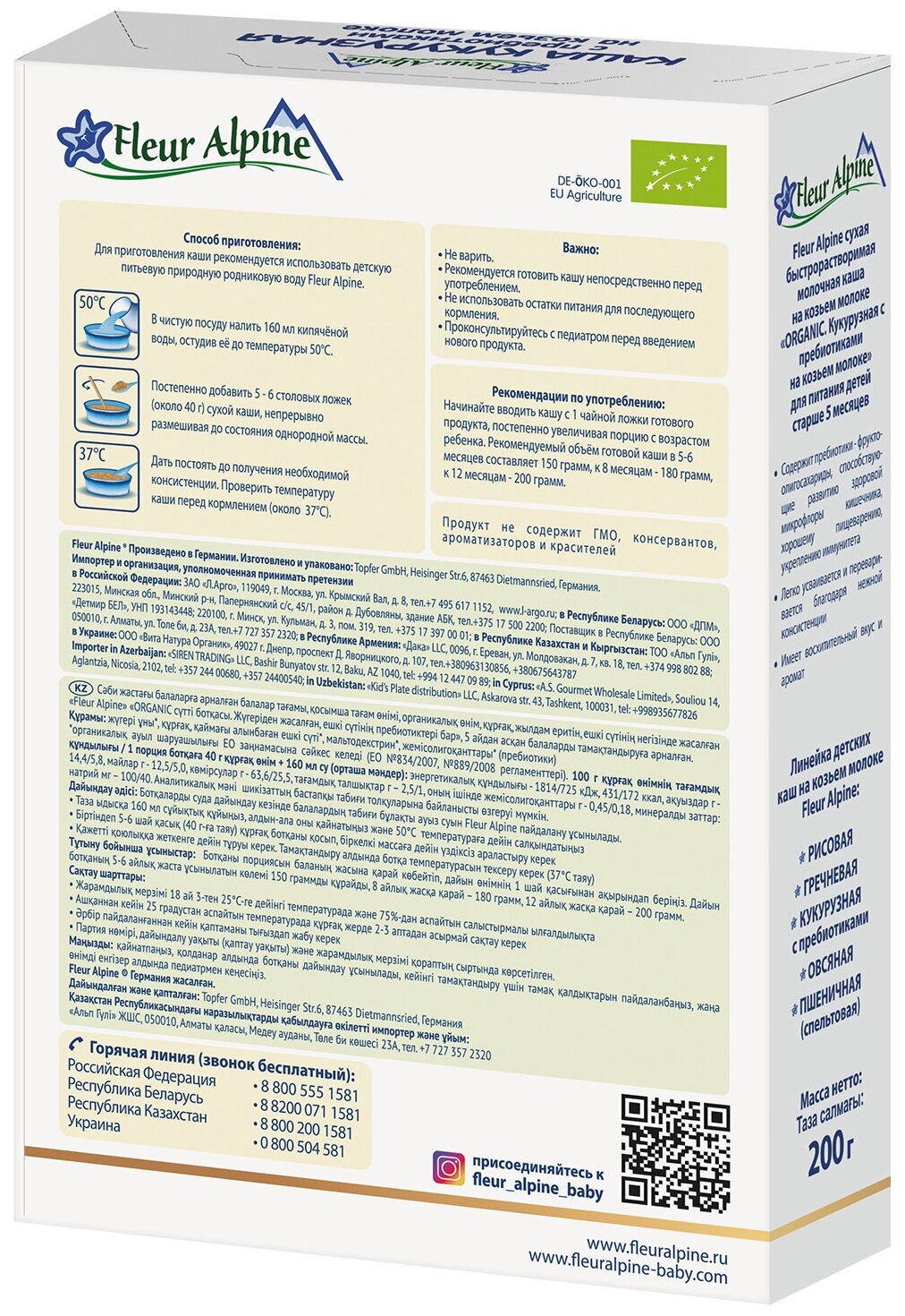 Каша Fleur Alpine на козьем молоке Органик кукурузная с пребиотиками, 5 мес, 200 г интересное: