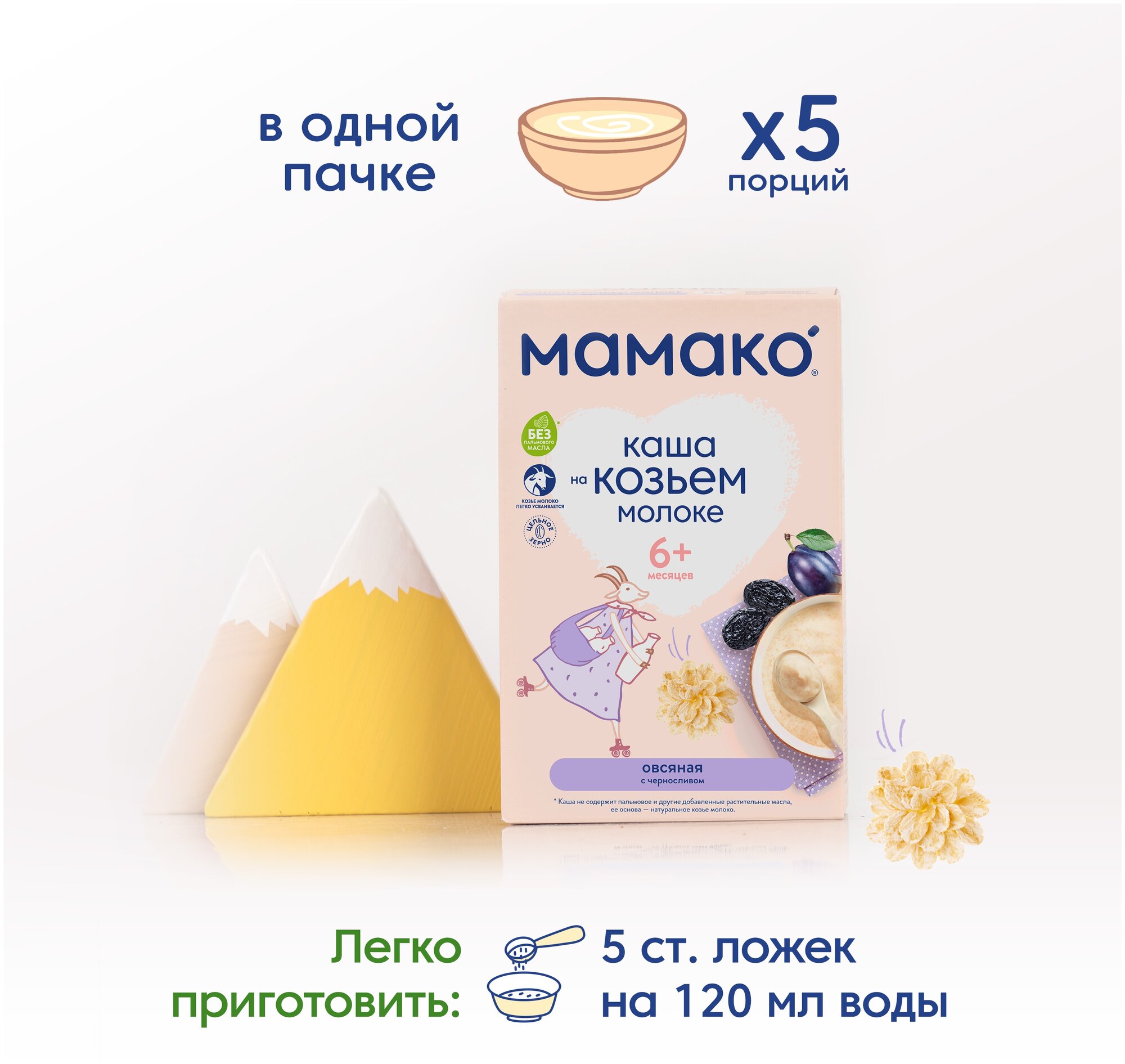 Каша мамако овсяная с черносливом на козьем молоке, 200г интересное: