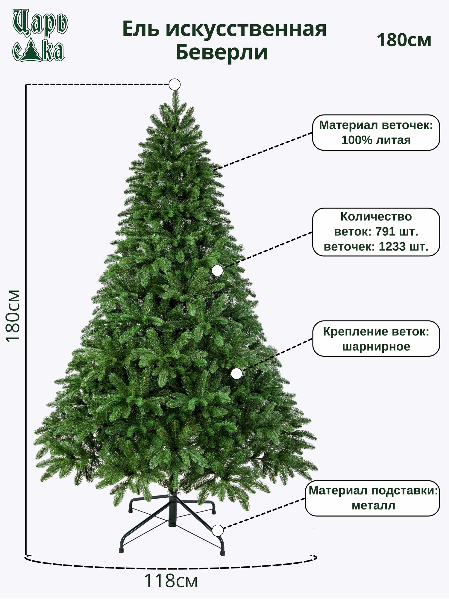 Искусственная ёлка Беверли 180 см, литая 100%, царь елка БВР-180