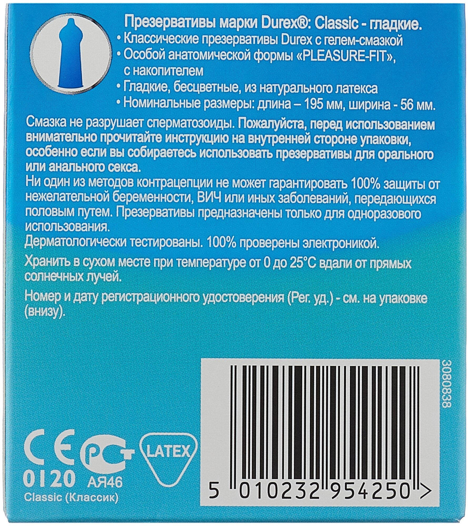 Презерватив DUREX Classic (классические) №12 + гель-смазка