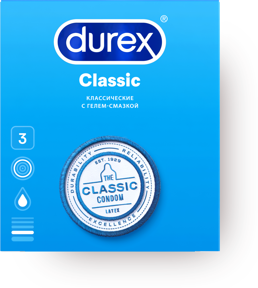 Durex Classic Презервативы классические с гелем-смазкой, 3 шт