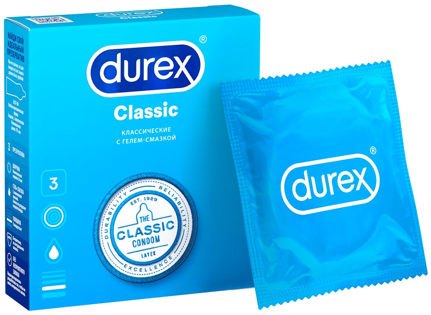 Durex презервативы Classic классические с гелем-смазкой 3шт