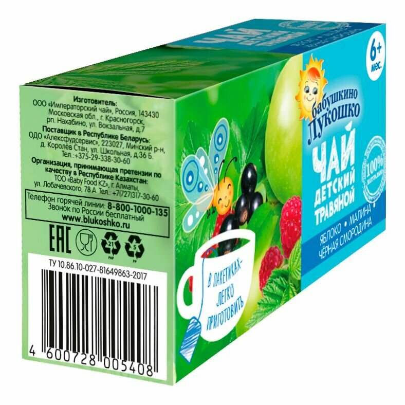 Чай для детей Бабушкино Лукошко Яблоко, малина, черная смородина 20 г, в пакетиках, 1 шт. интересное: