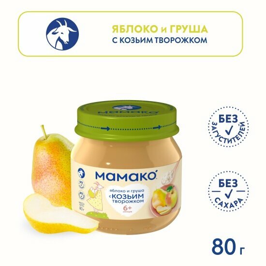 Пюре мамако яблоко с грушей и козьим творогом мамако, 80 г/ 6 шт интересное: