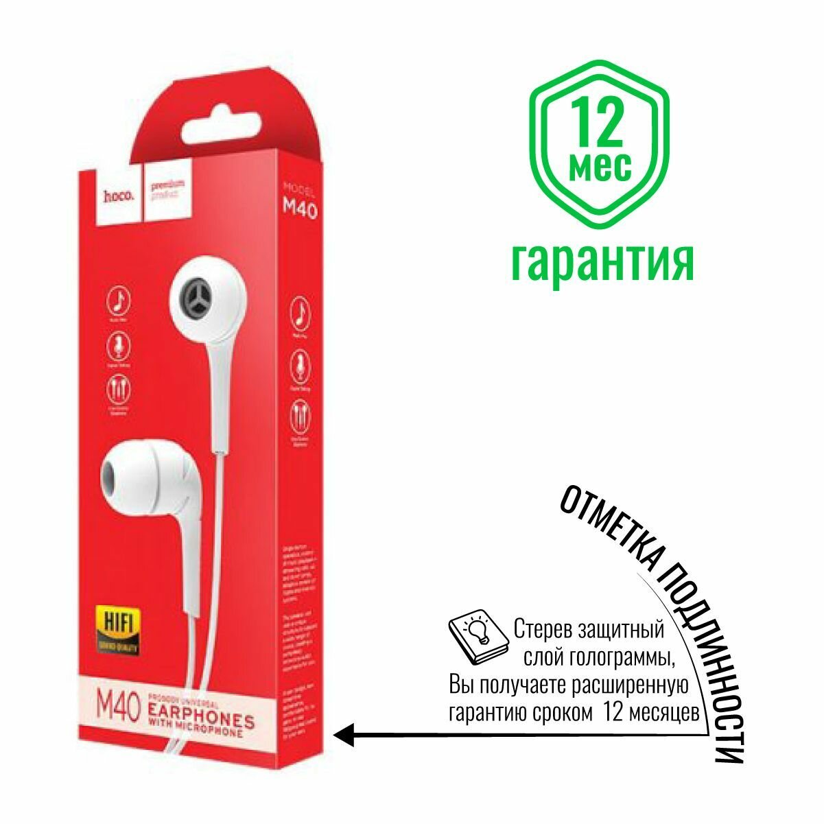 Гарнитура внутриканальная Hoco M40, белый
