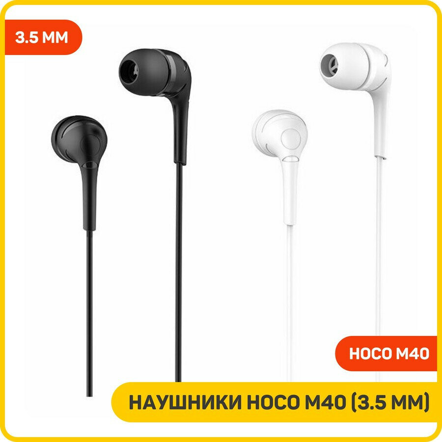 Наушники Hoco M40, проводные, вакуумные, микрофон, Jack 3.5 мм, 1.2 м, черные