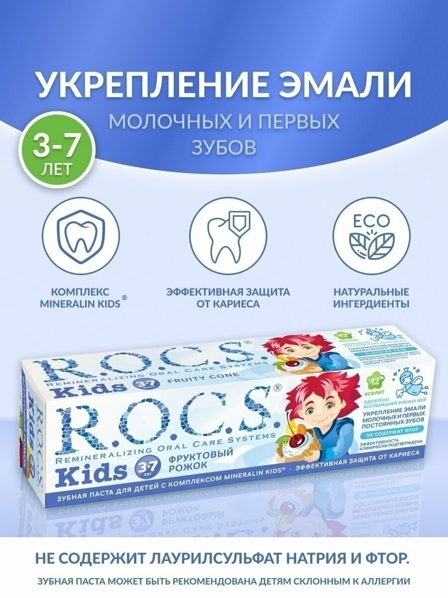 Детская зубная паста R.O.C.S. Kids Фруктовый рожок (с 3 до 7 лет), 35 мл