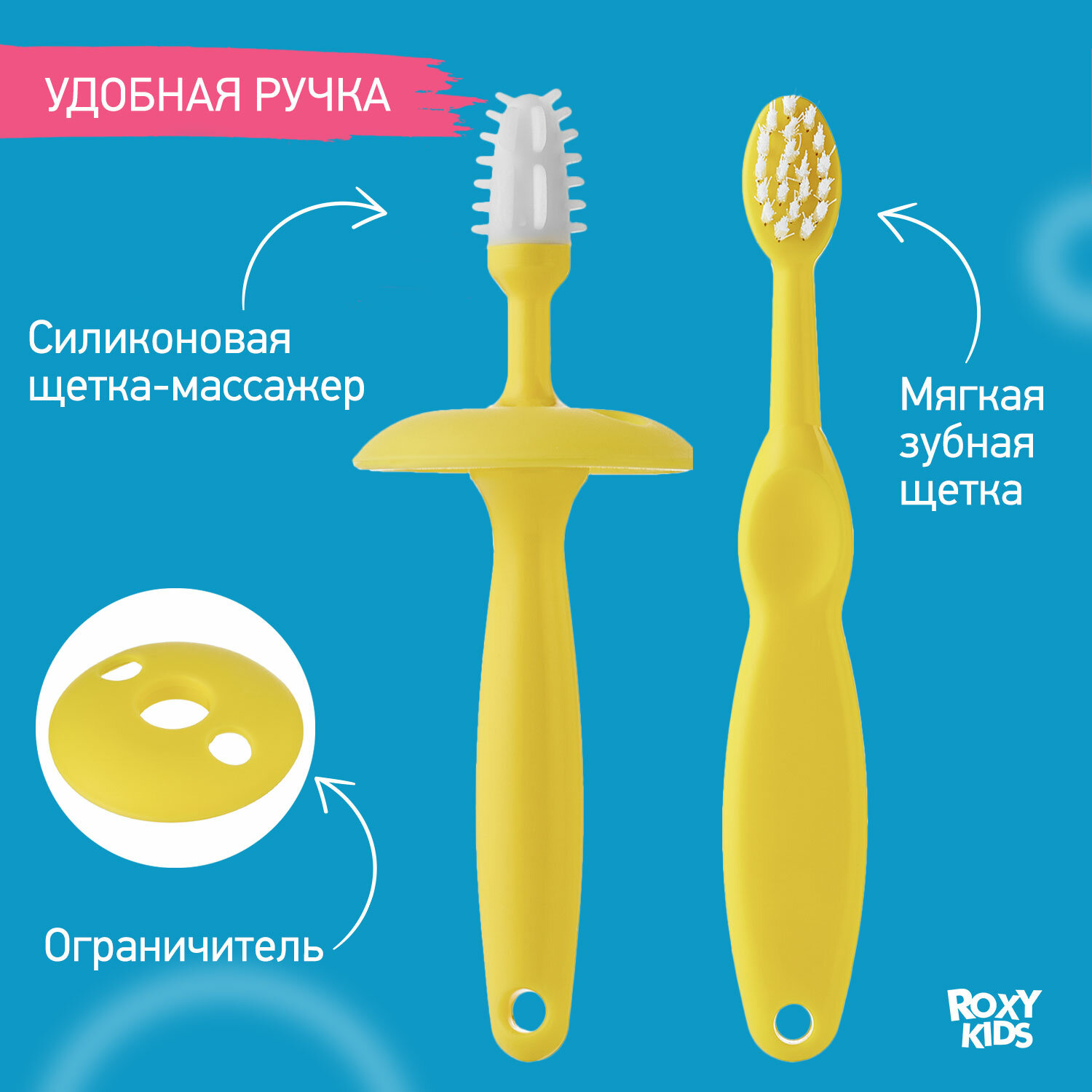 Набор Roxy-Kids: Зубная щетка и щетка-массажер для малышей, желтый