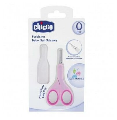Ножницы детские Chicco из нержавеющей стали с закругленными концами, цвет розовый 0+/детские ножницы маникюрные/ножницы для новорожденных/детские ножницы для ногтей/chicco ножницы детские