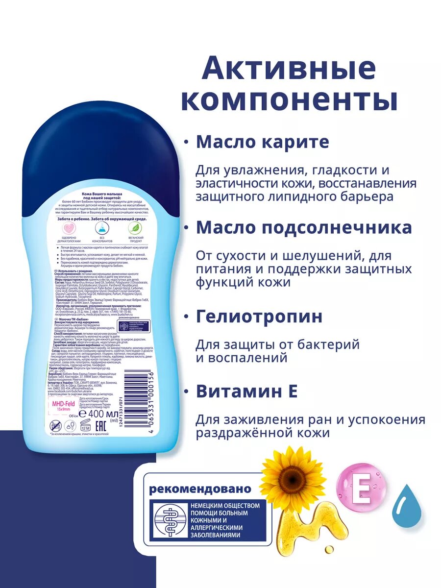 Bubchen Молочко детское для тела 400 мл с маслом карите и пантенолом
