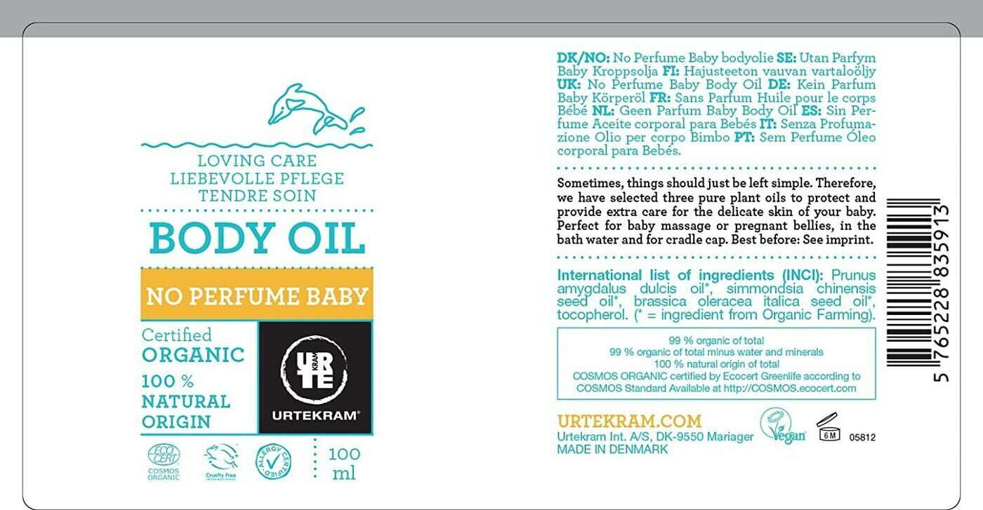 Масло для массажа и купания младенцев, без отдушки, гипоаллергенное, органическое, Urtekram, 100 мл