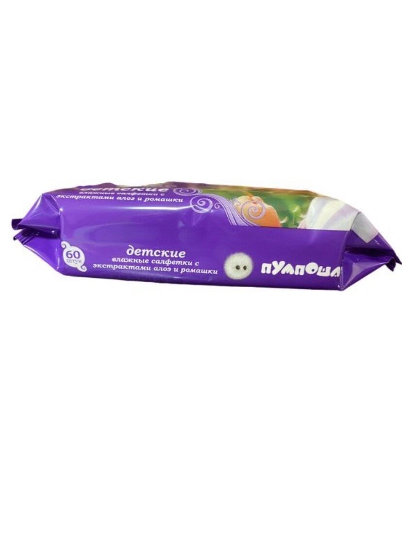 Влажные салфетки Пумпоша С экстрактом алоэ и ромашки, 60 шт. интересное: