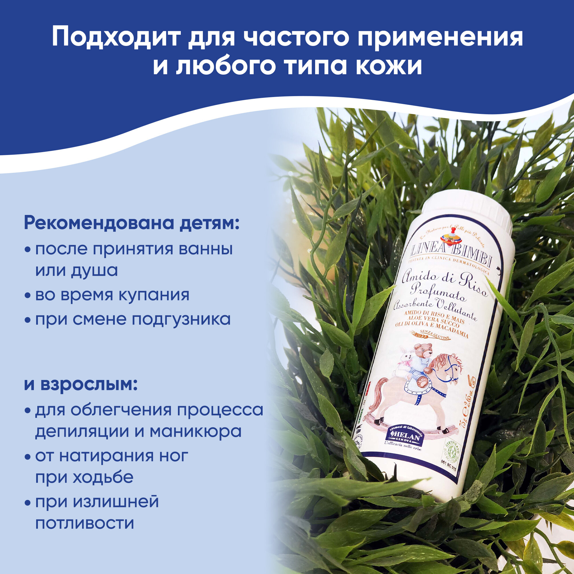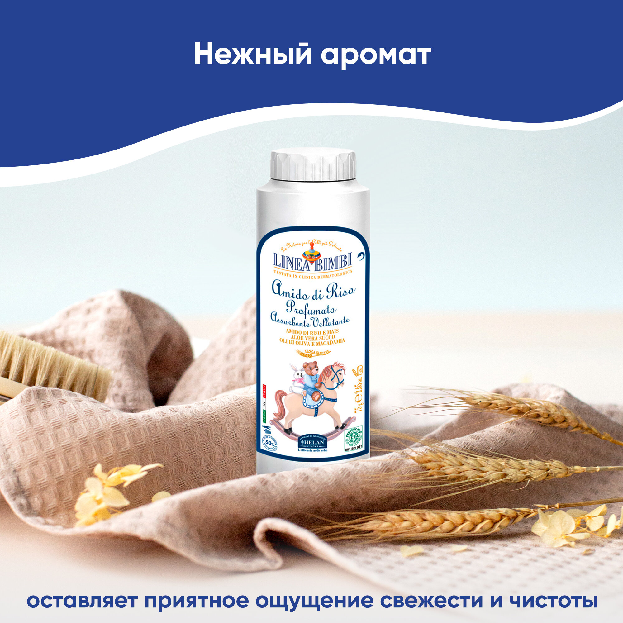Парфюмированная рисовая присыпка Linea Bimbi 75 г интересное: