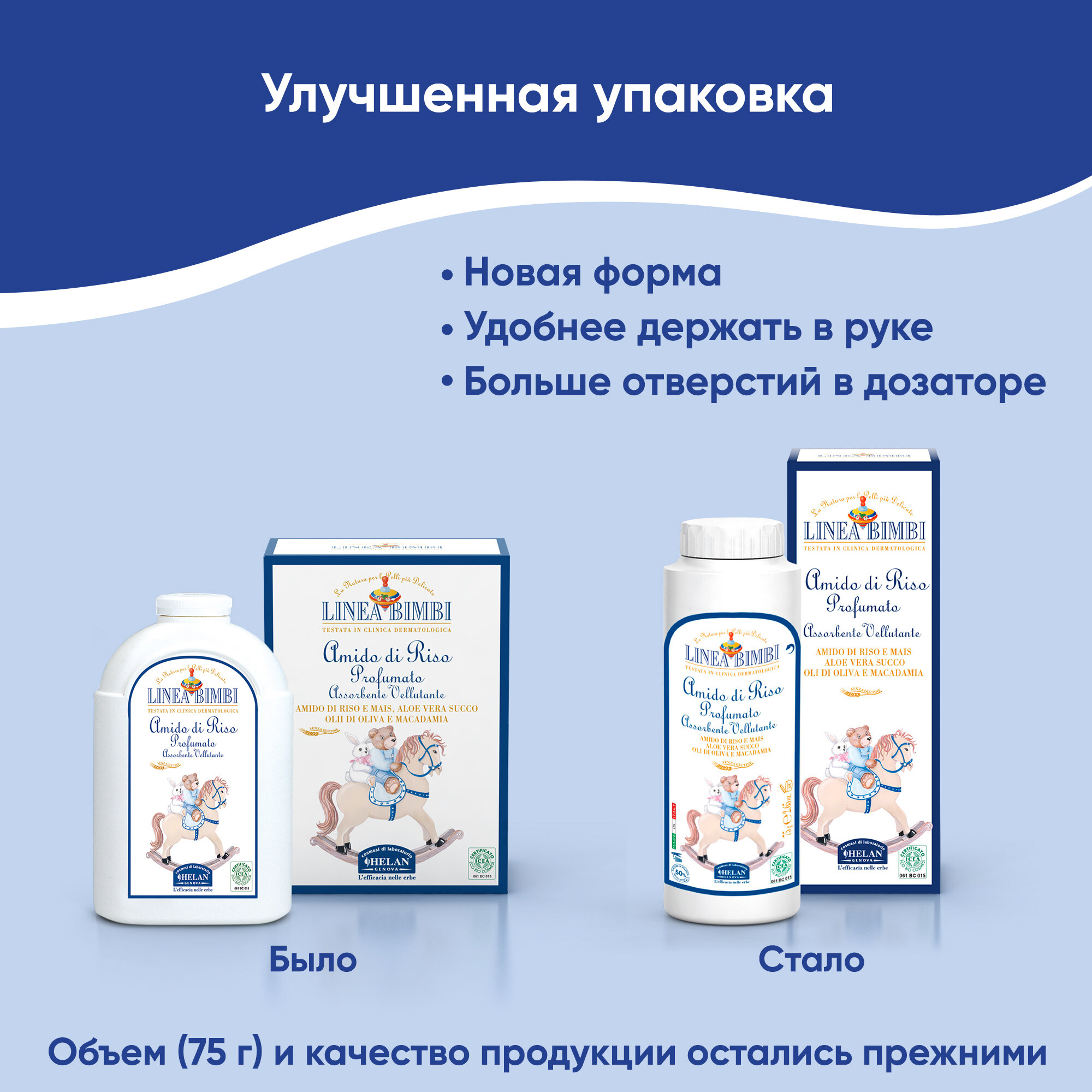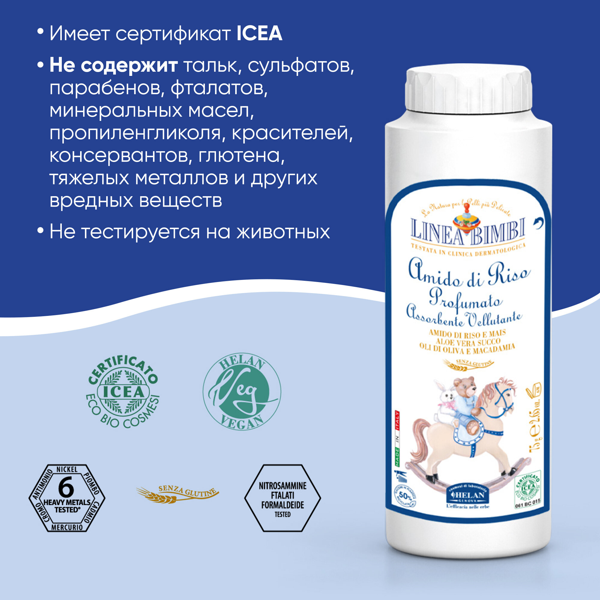 Детская рисовая присыпка Helan Linea Bimbi, 75 г