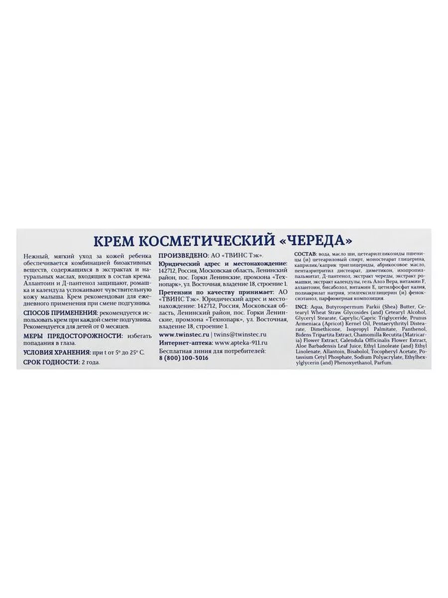 Крем детский "911" Череда под подгузник от опрелостей, 150 мл 2542545