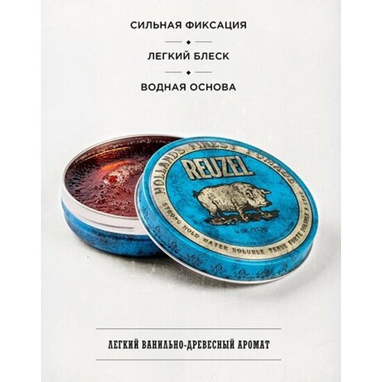 Reuzel Помада для укладки волос сильной фиксации на водной основе, синяя банка 113гр