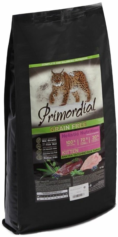 Сухой корм Примордиал Беззерновой для Котят Утка Индейка 6 кг