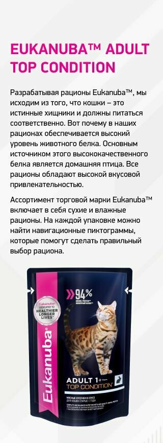 Eukanuba ADULT TOP CONDITION SALMON пауч влажный корм для взрослых кошек, лосось в соусе, 85 гр