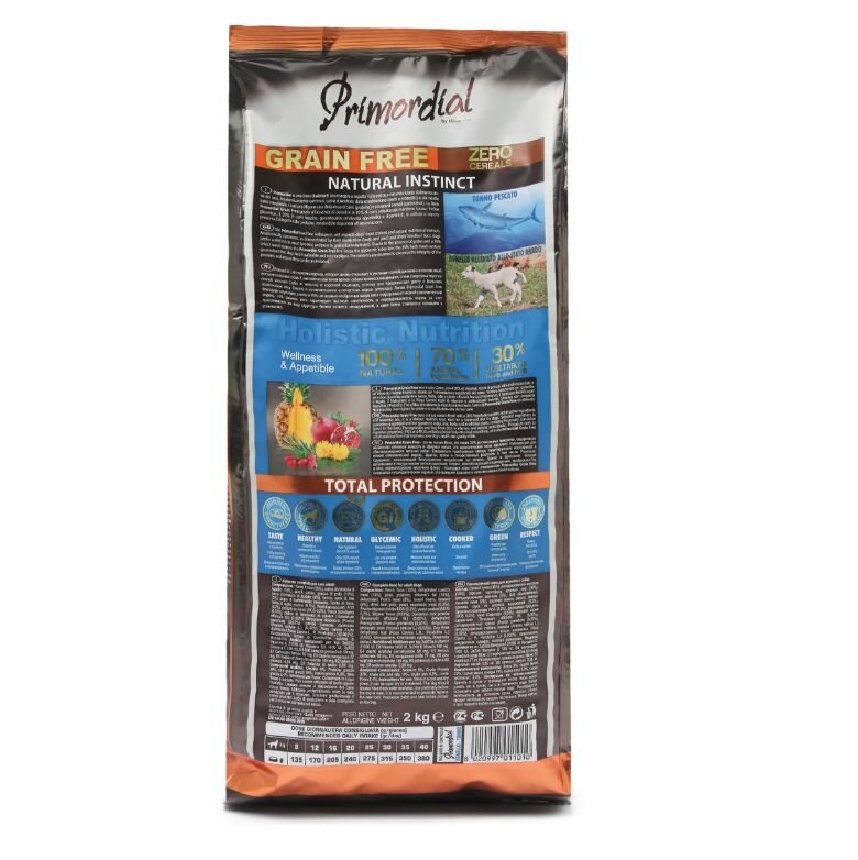 PRIMORDIAL ADULT ALL BREED беззерновой для взрослых собак всех пород с тунцом и ягненком (12 кг)