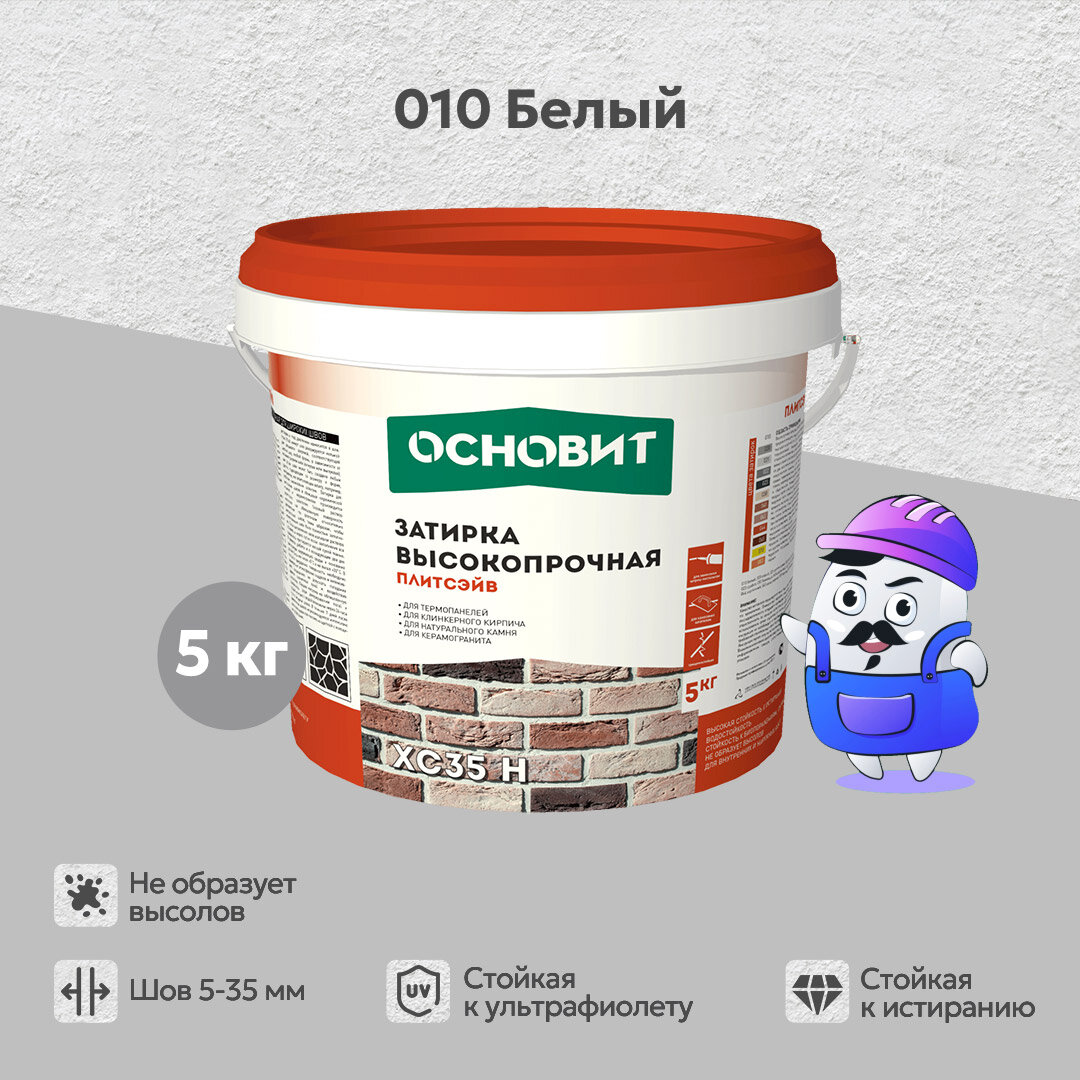 Затирка цементная высокопрочная Основит Плитсэйв XC35 H №010, белая, 5 кг