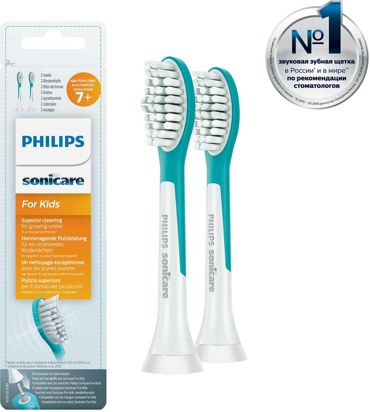 Насадка Philips Sonicare For Kids HX6042/33 для звуковой щетки, aqua, 2 шт.