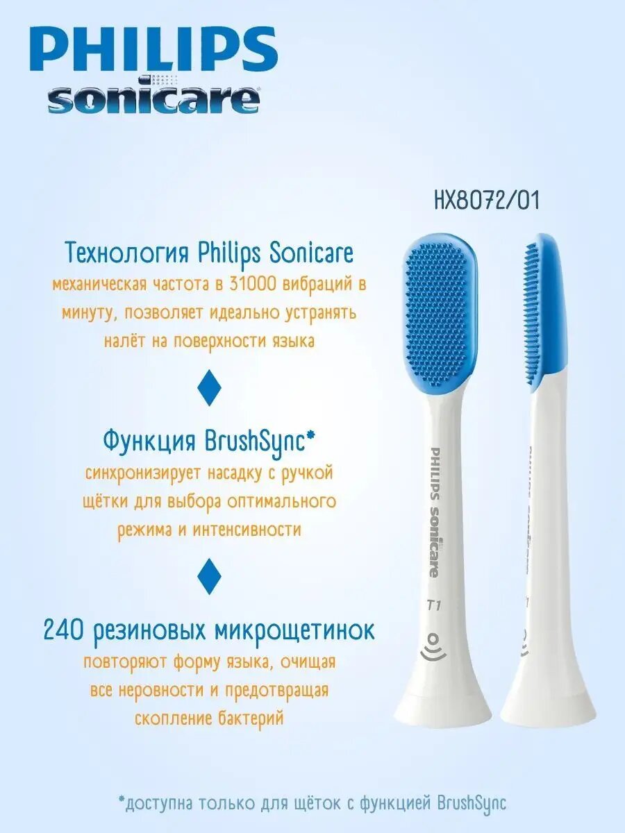 Насадка для зубных щеток Philips Sonicare HX8072/01 TongueCare+ (упак.:2шт) со всеми взрослыми щетками Philips Sonicare
