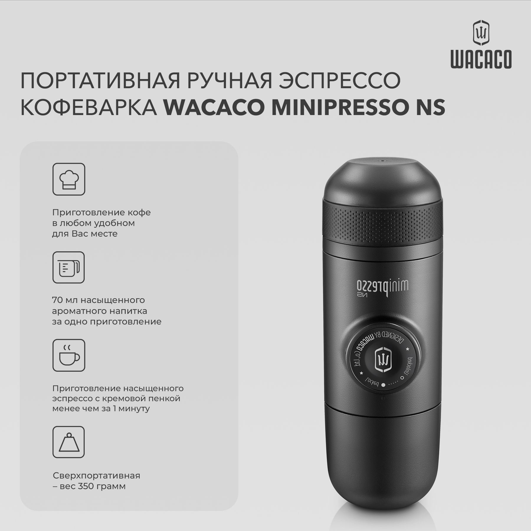 Портативная кофемашина Wacaco Minipresso NS, совместимые капсулы NS (оригинальные капсулы Nespresso и совместимые продукты), кофемашина для путешествий, с ручным управлением, идеально подходит для пеших прогулок