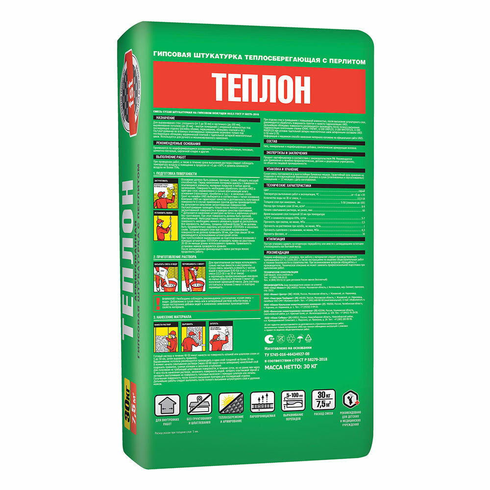 Штукатурка гипсовая Теплон армированный, 30 кг
