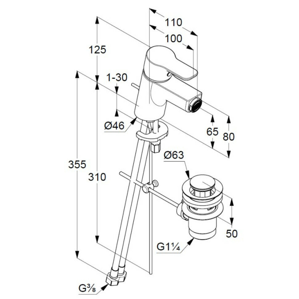 Смеситель для биде с донным клапаном Kludi Pure&Easy 375339165