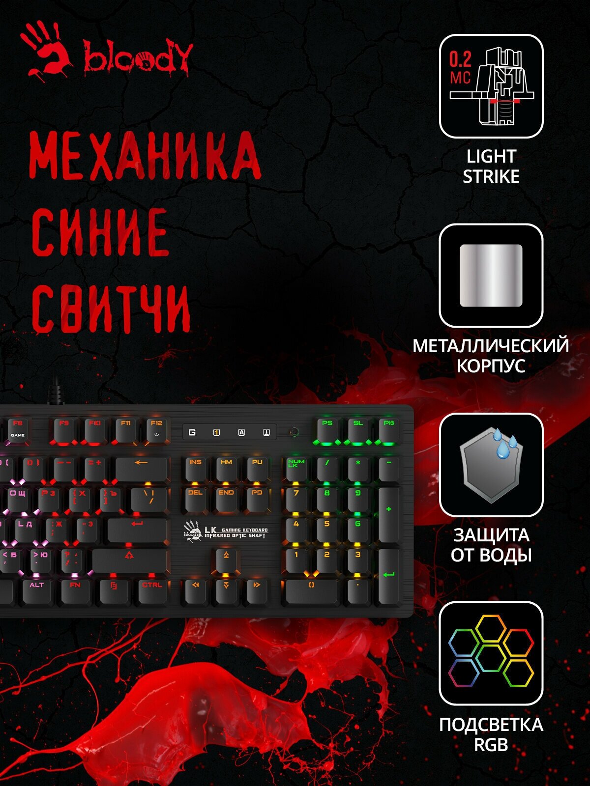 Купить Клавиатура A4Tech Bloody B820R Blue S, русские и английские буквы, черный (b820r black (blue switch))