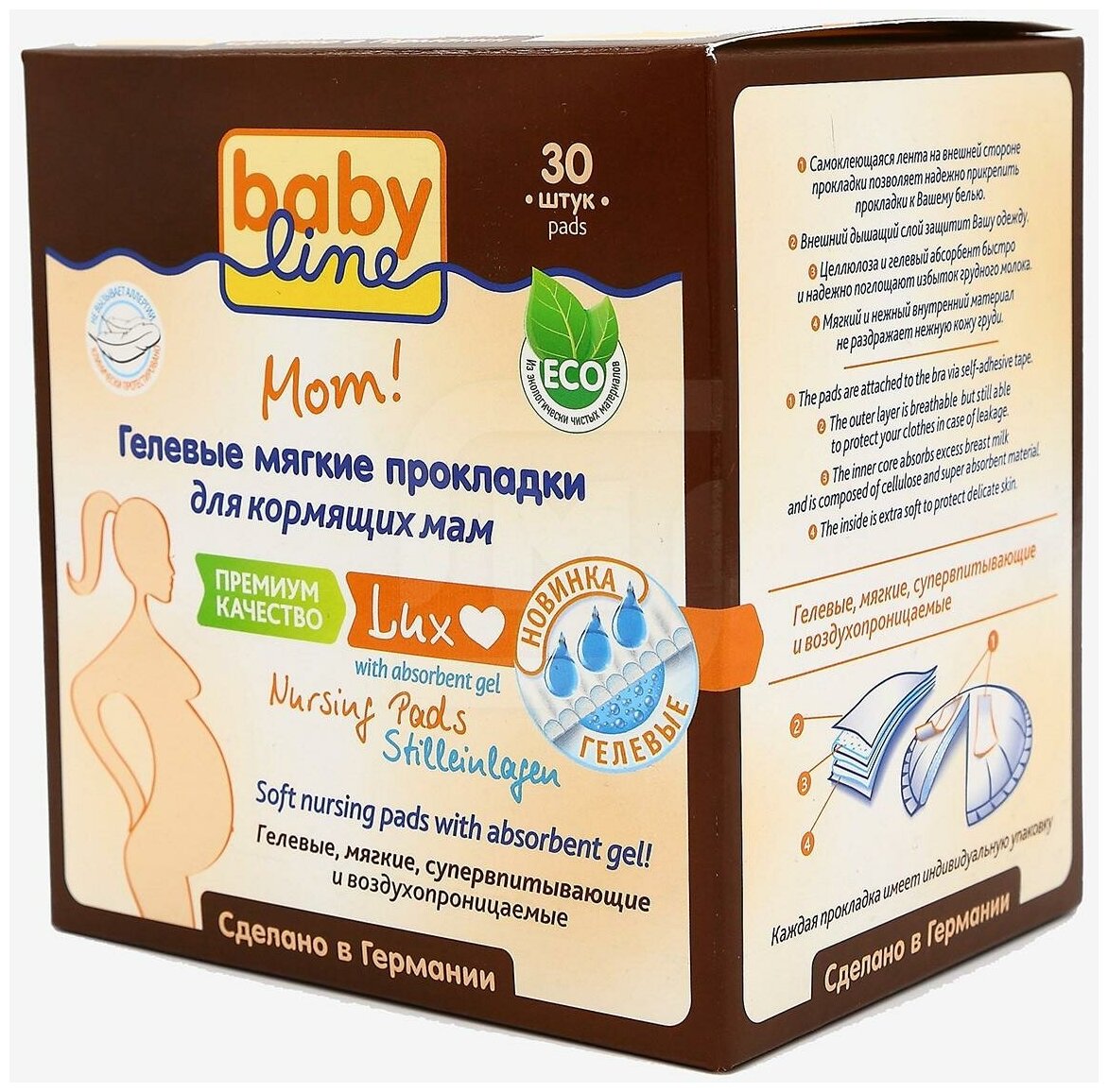 BABYLINE Гелевые прокладки для кормящих мам, Германия, 30 шт.