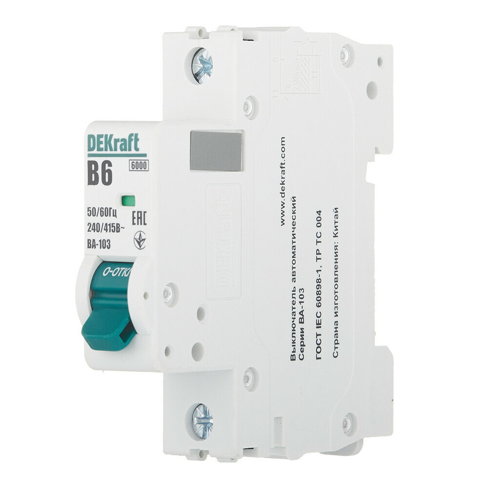 Автоматический выключатель Dekraft 1п B 6А 6кА ВА-103, 12205DEK