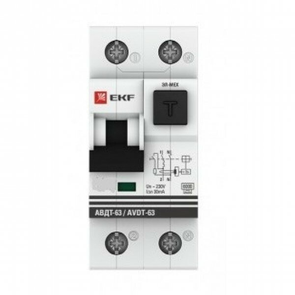 Дифференциальный автоматический выключатель EKF PROxima АВДТ-63 63А, С, 30мА, тип A, 6кА, электронный