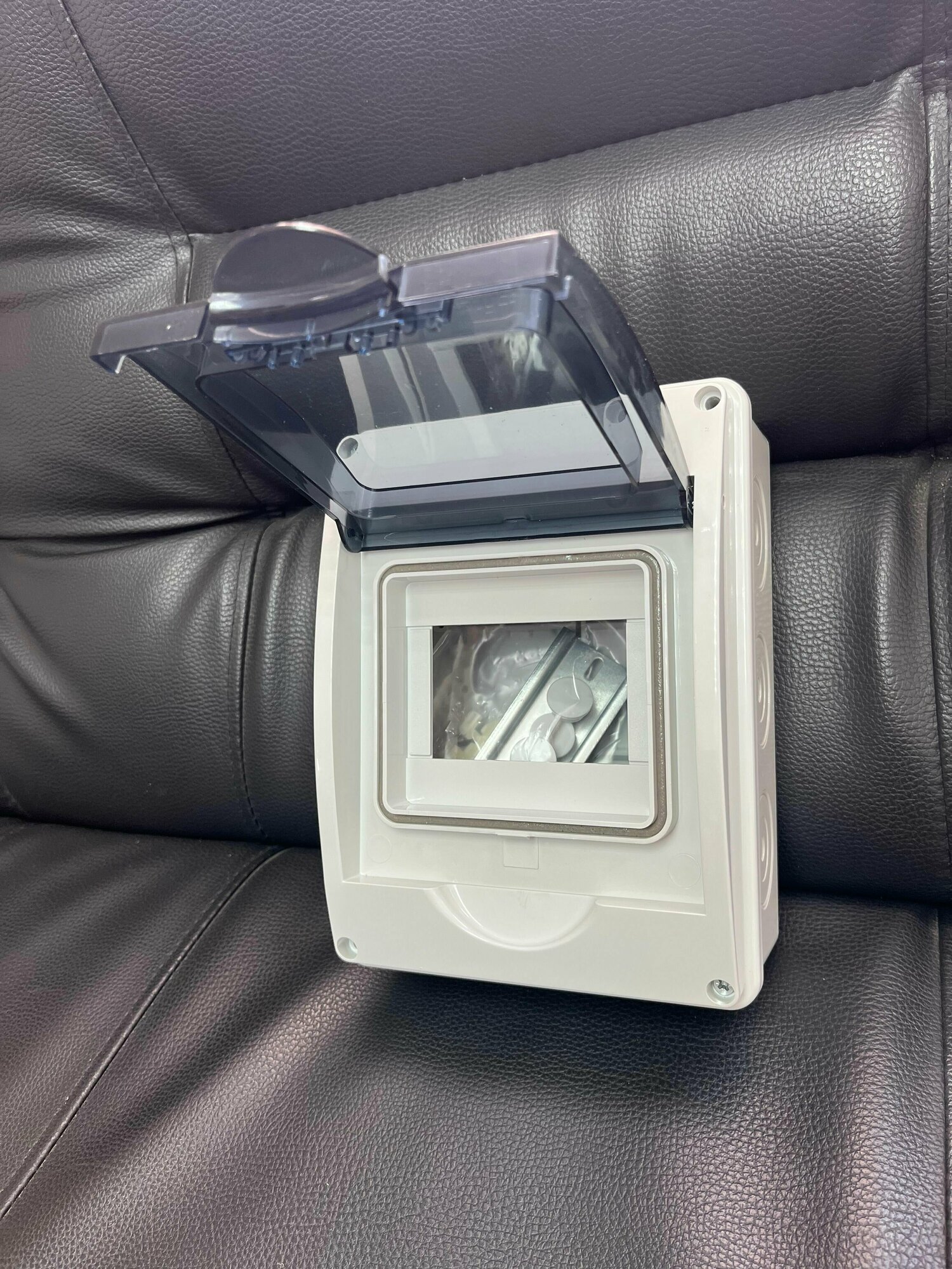 Бокс серый на 5 модулей прозрачная дверь IP65 Рувинил 69005