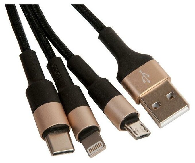 Кабель Hoco X26 Xpress USB - microUSB/USB Type-C/Lightning, 1 м, 1 шт., черный/золотистый