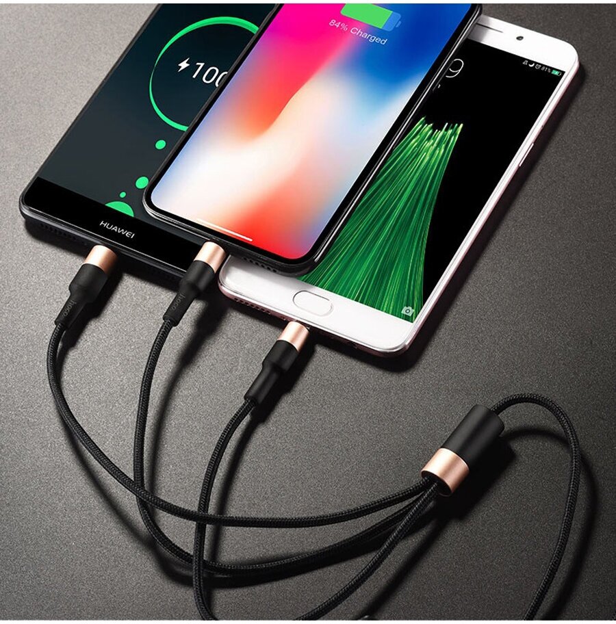 Кабель HOCO X26 Xpress USB на 3in1 (Micro + Lightning + Type-C),2A, 1 метр черный с золотом, для быстрой зарядки гаджетов