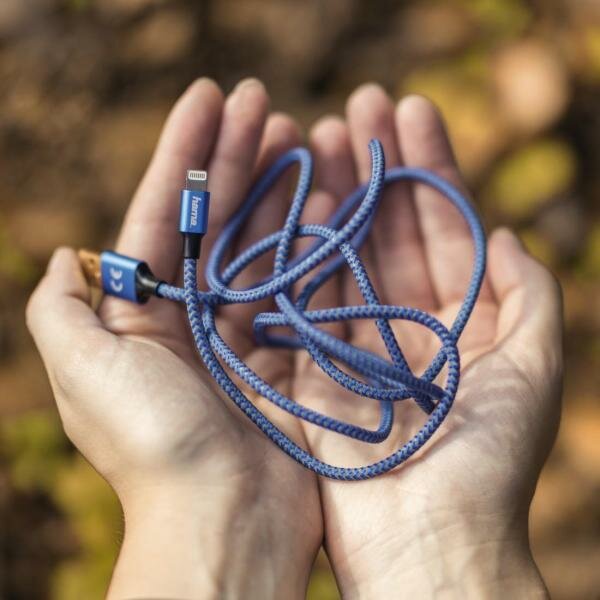 Кабель HAMA 00178300, Lightning (m) - USB (m), 1.5м, MFI, в оплетке, синий