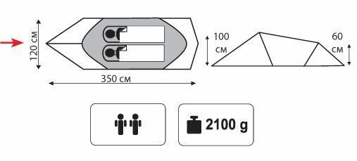 Если собираетесь вдвоем спать - только с близкими, т.к. палатка скорее "полуторка". Я один спал и мне было прекрасно. И все вещи вошли без проблем. В тамбуре поместится рюкзак один и обувь. |