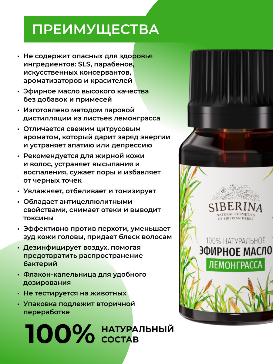 Siberina Натуральное эфирное масло лемонграсса, 8 мл интересное: